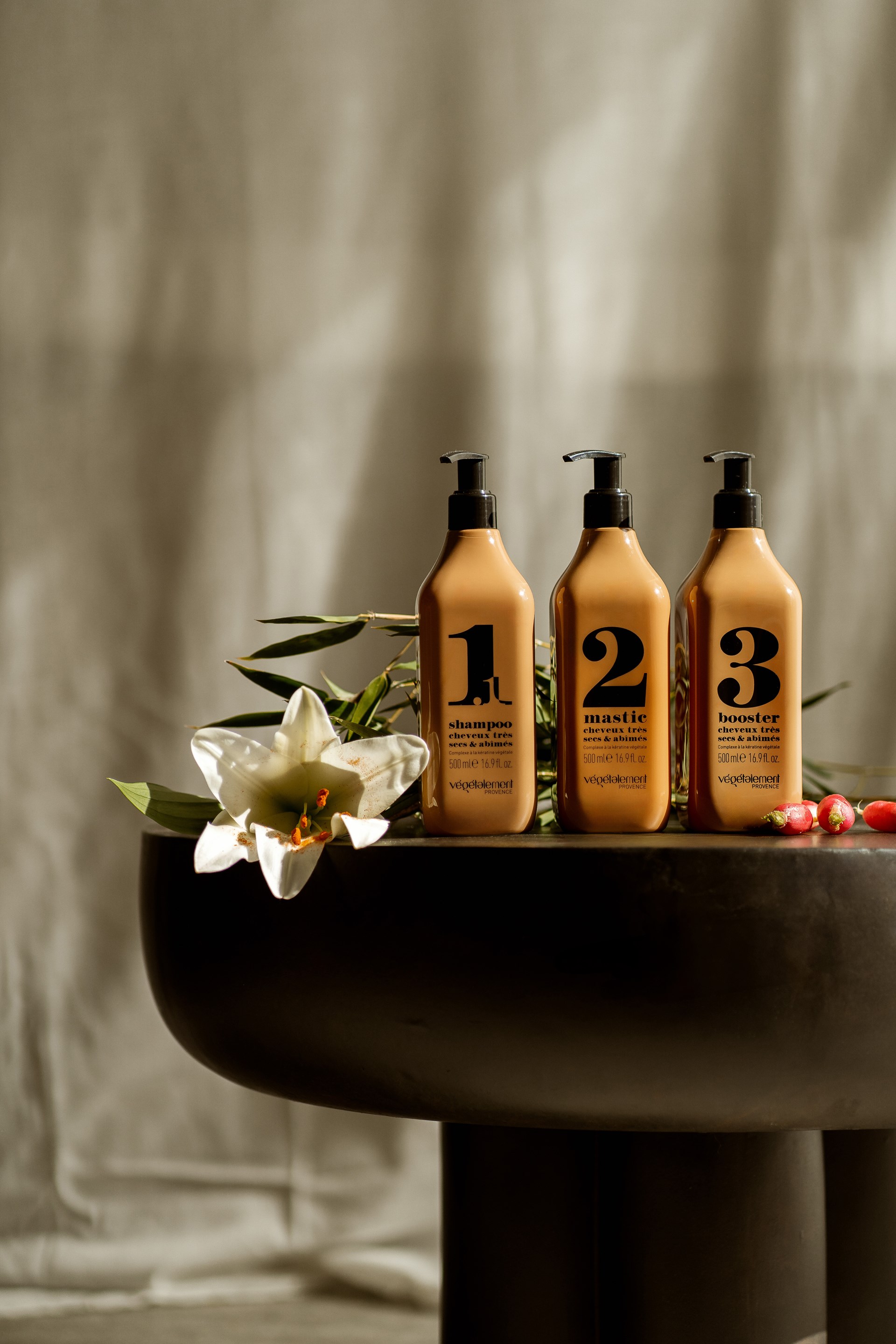 This collection, developed using 100% botanical keratin (wheat, soya and corn), treats the hair using a unique protocol developed by the experts at Végétalement Provence.