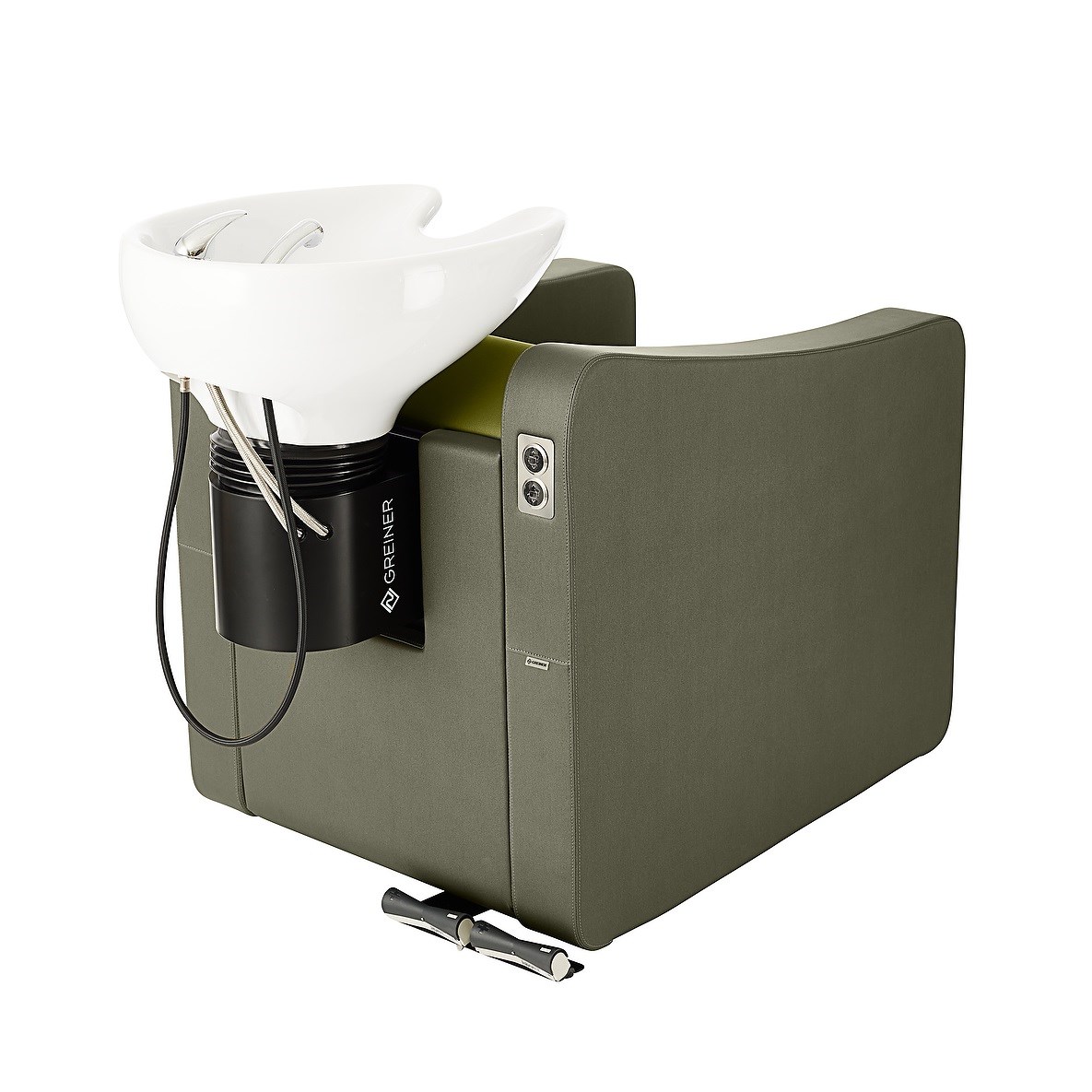 De wasunit is niet alleen comfortabel voor de klanten maar ook voor de kapper. Hij is in de hoogte elektrisch regelbaar met behulp van een voetschakelaar.